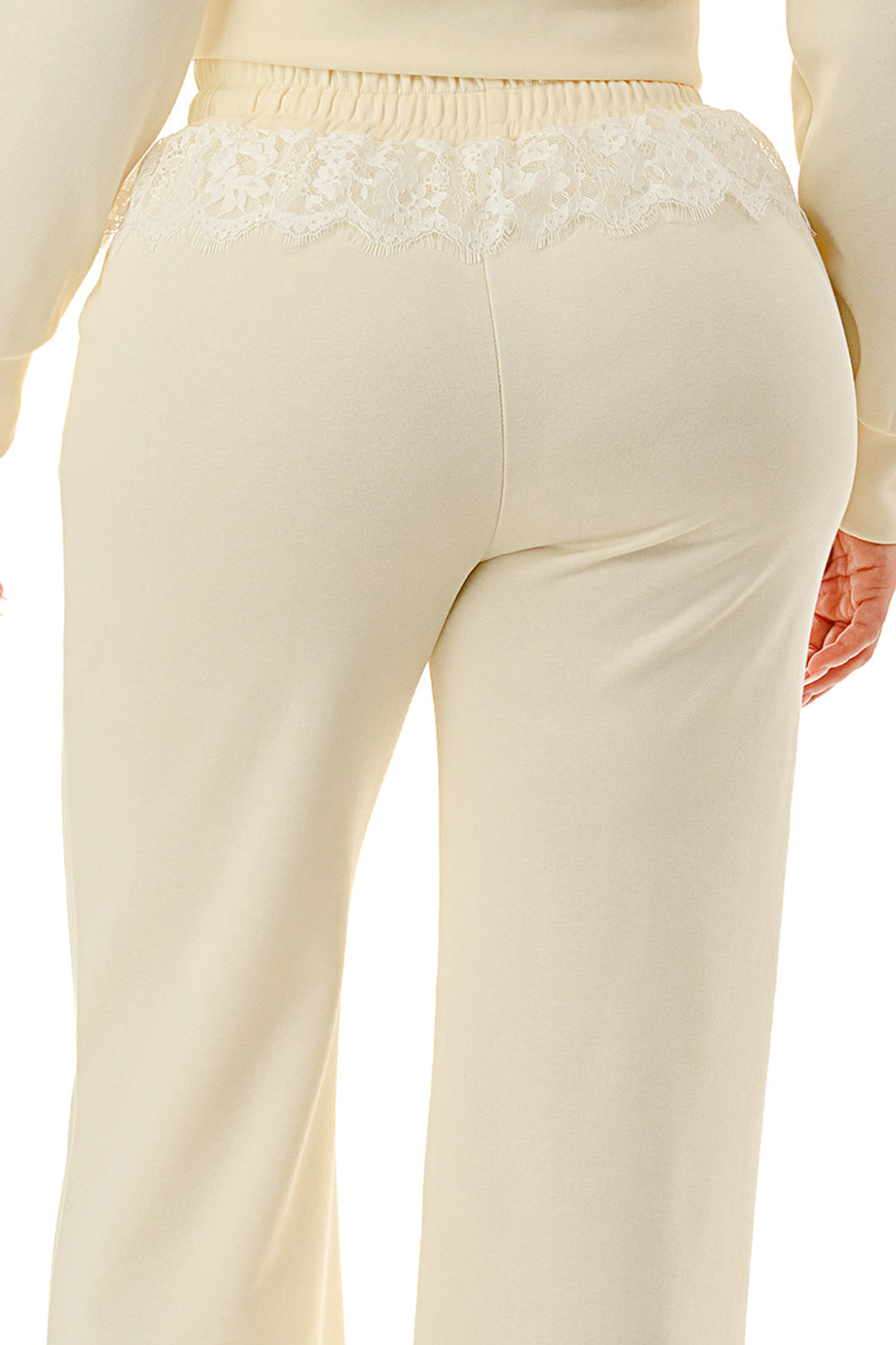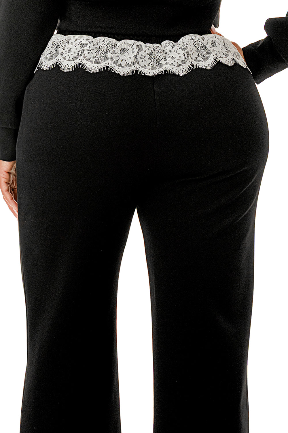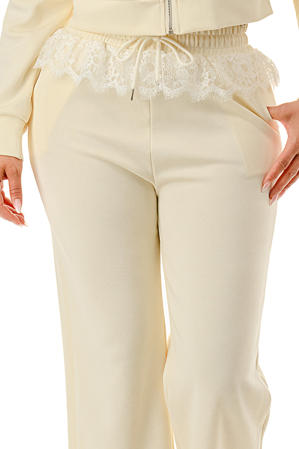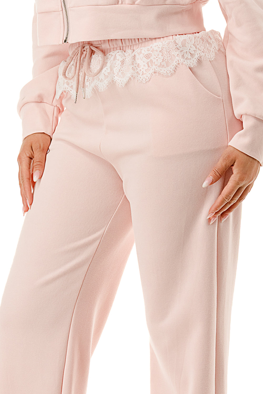 Sweater pant set. Top with inner lace lining and lace hood. Full zip up sweater top.