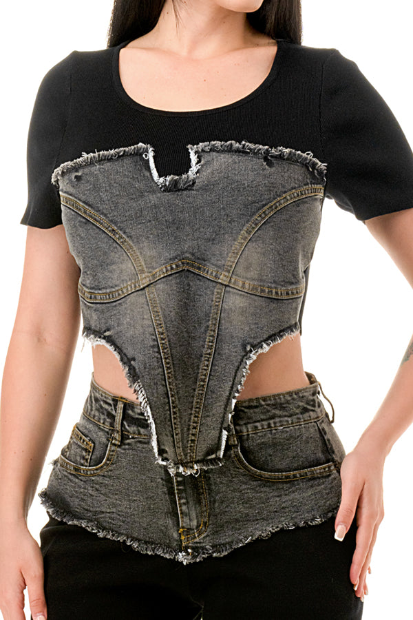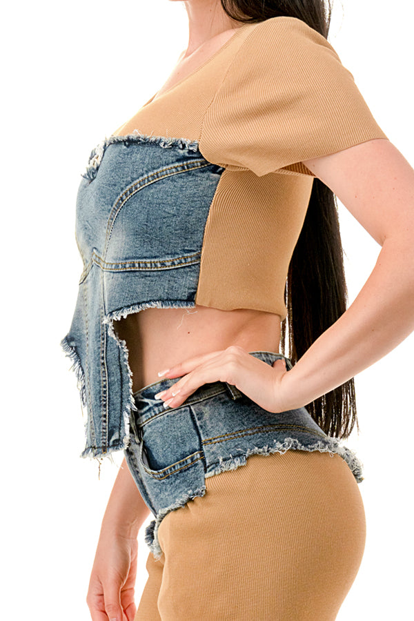 -2 Piece Knit and Stretch Denim Fabric Set