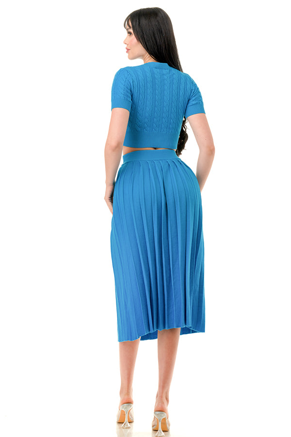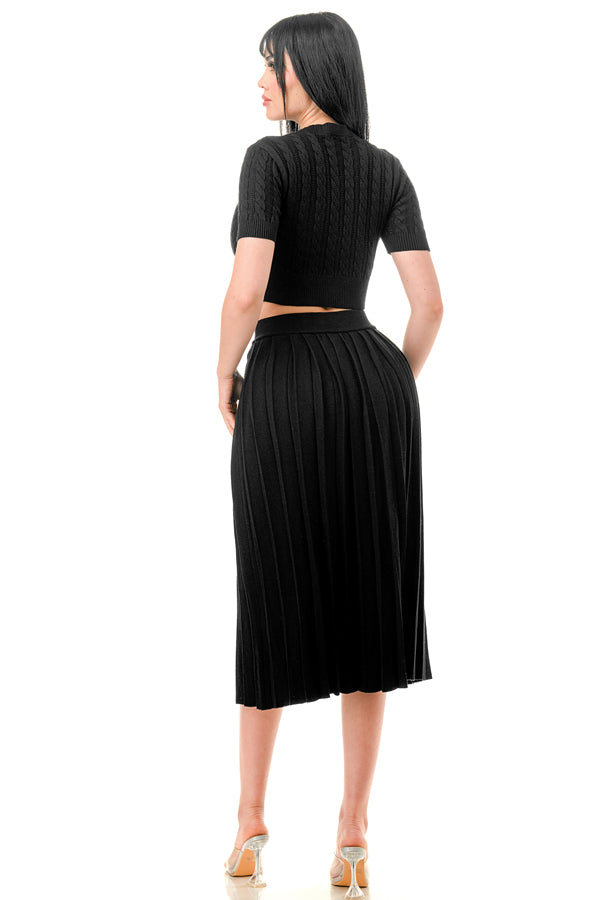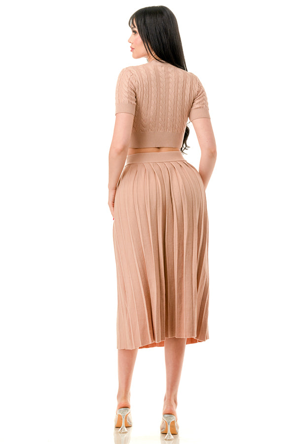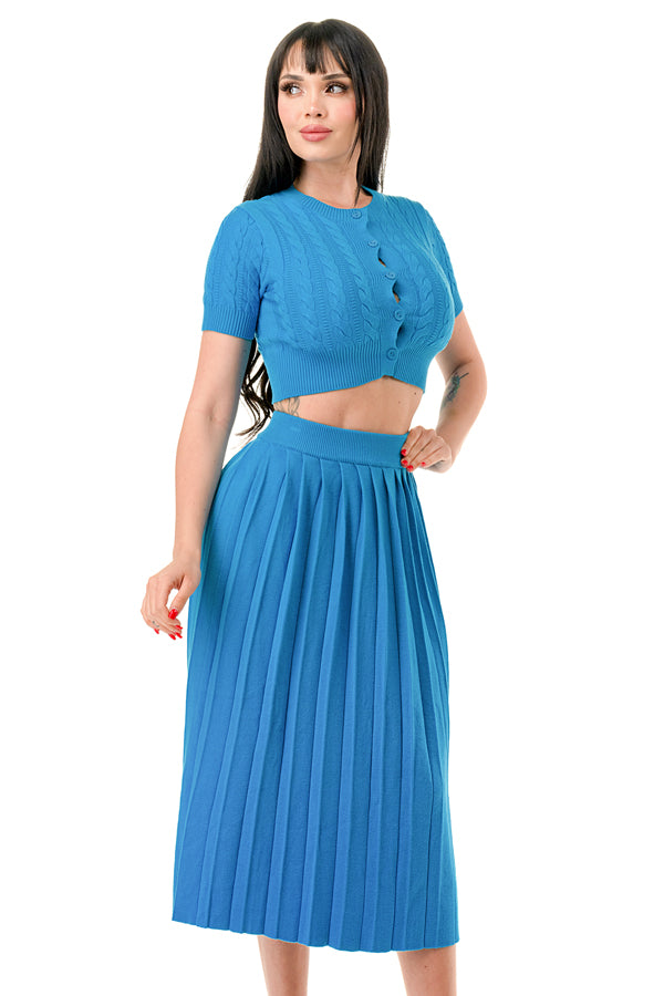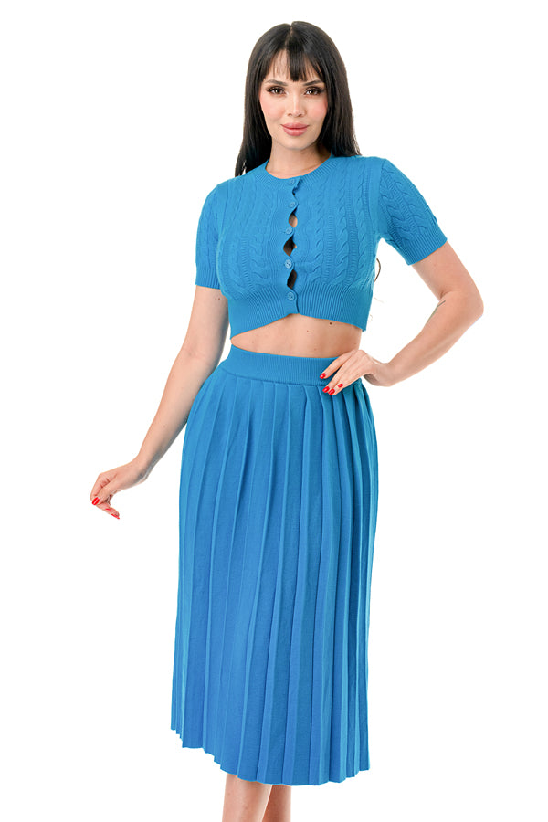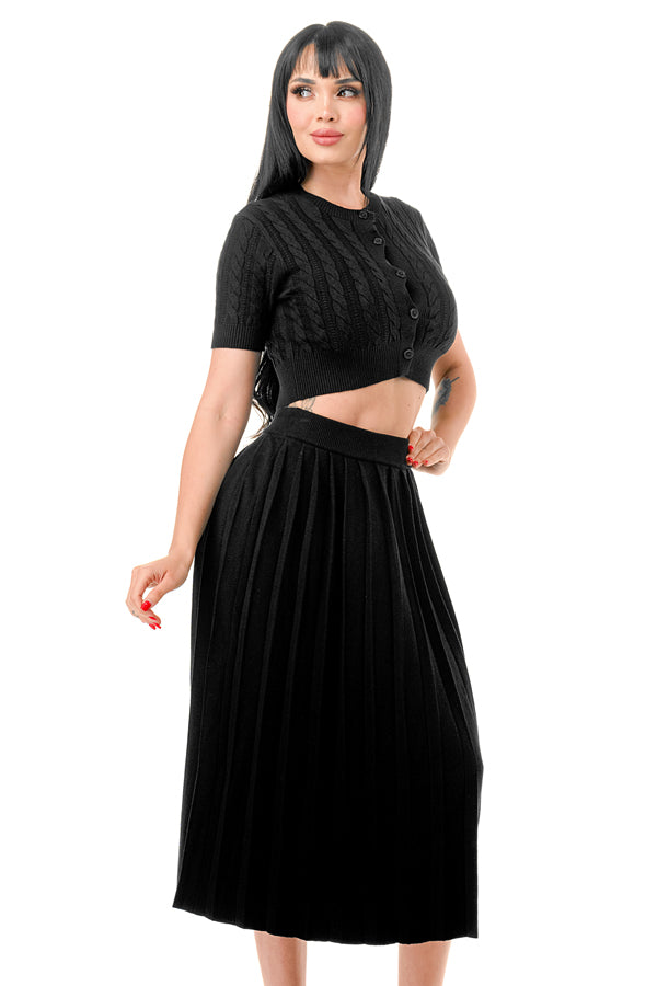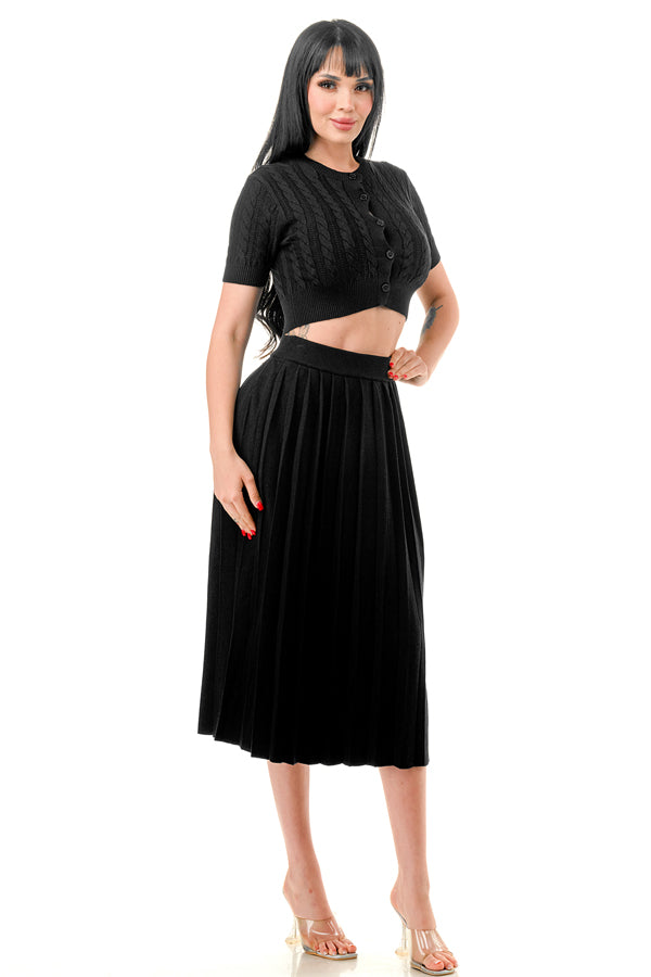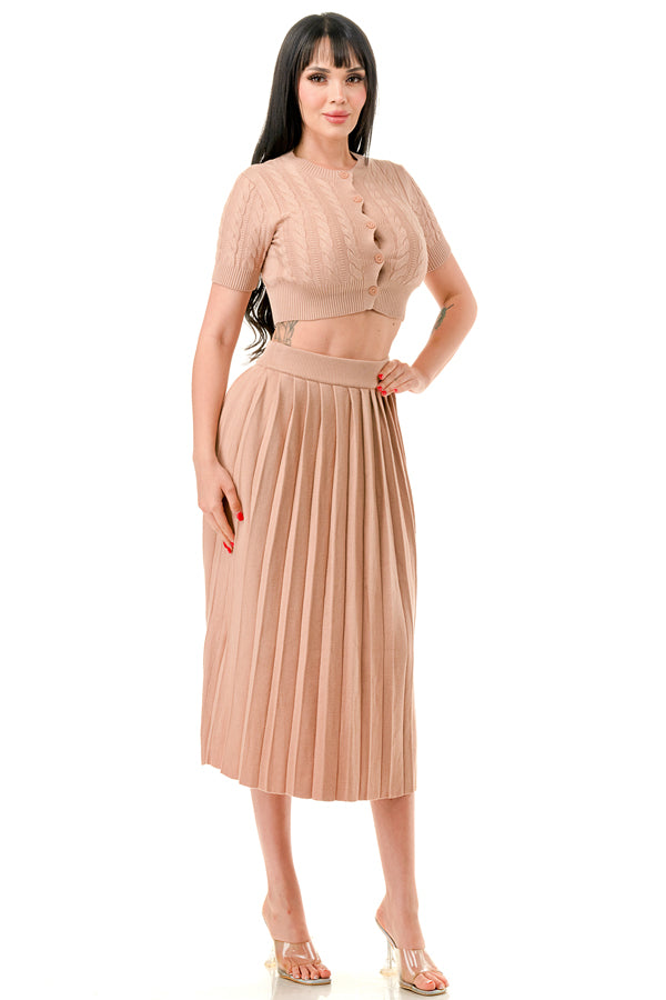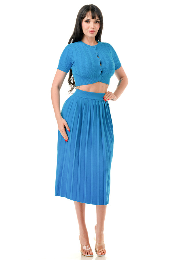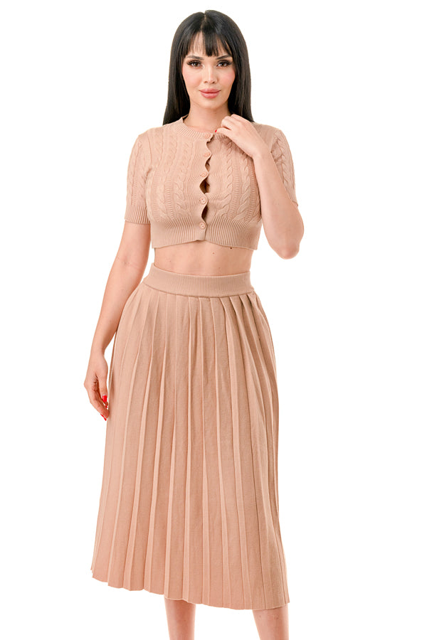 Cable Knit Button Up Crop Top and Midi Skirt Set
