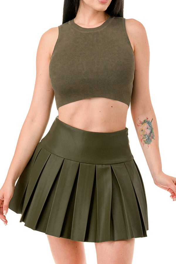 Knit Crop Top and Leather Tennis Mini Skirt Set